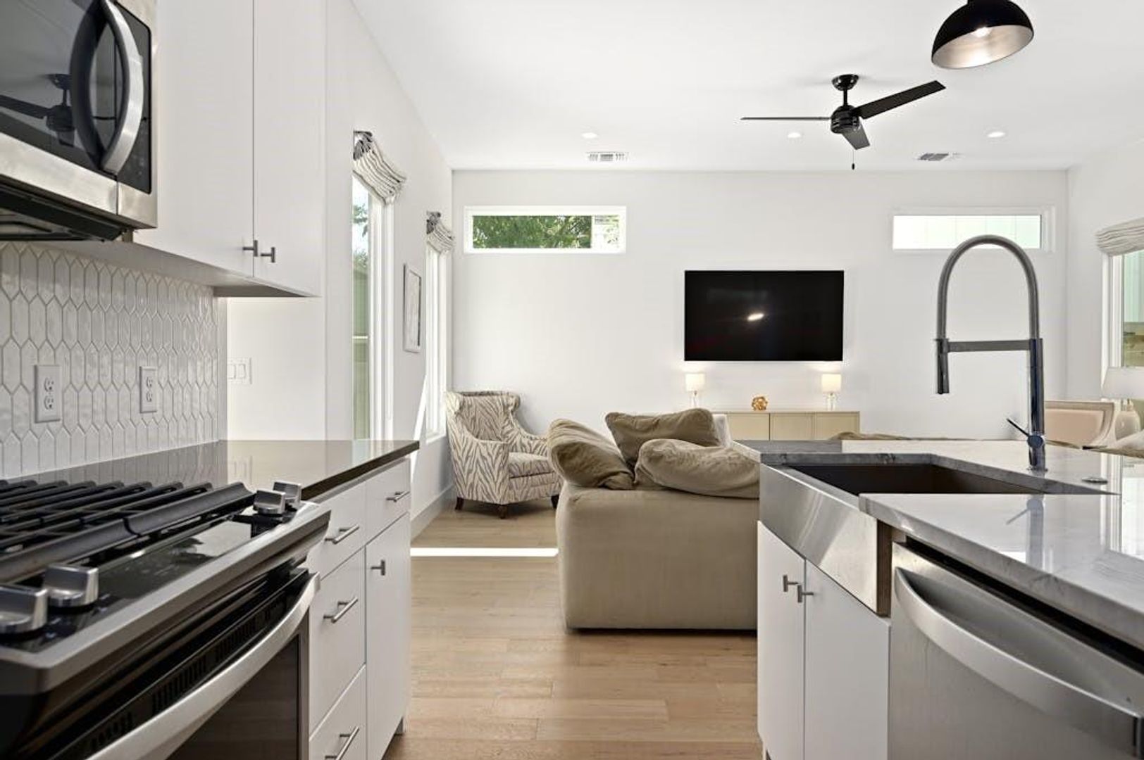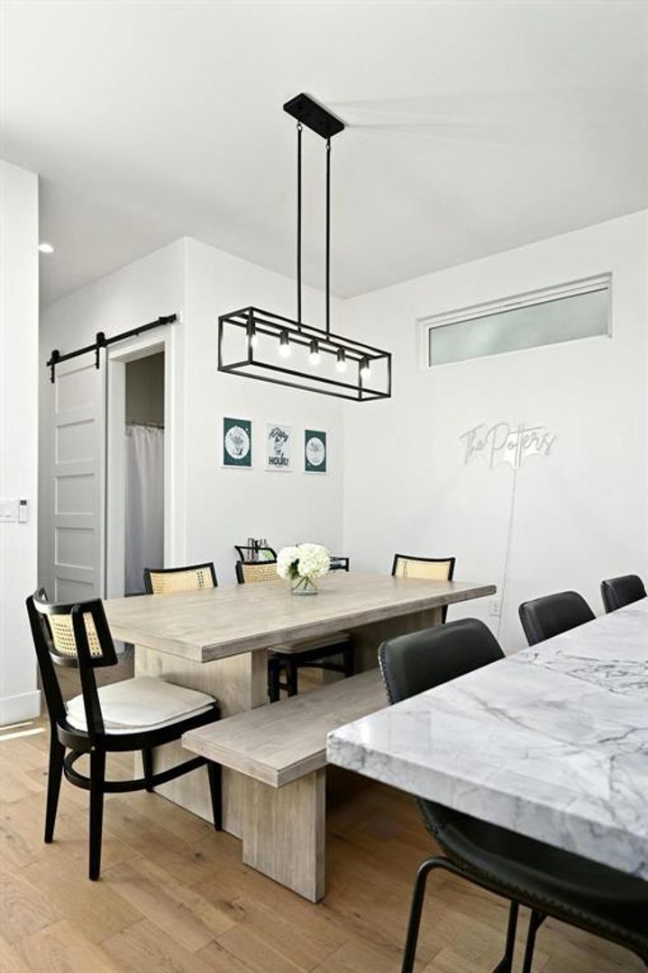 Pre-Lease for JULY 2026! Beautiful modern newer construction 4bedroom, 3 bath home designed with comfort and style in mind. The main level features an open kitchen/living/dining space with access to the backyard, a guest bedroom, a full bath, and a well-equipped laundry/utility room. Upstairs is home to a generous primary suite featuring a vaulted ceiling, dual vanity, soaking tub, separate shower, and walk-in closet. The two remaining guest bedrooms share the remaining full bath and both have spacious walk-in closets. The main level is complete with easy access to the attached one-car garage with epoxy-finished flooring and ample additional storage. The serene private backyard provides a tranquil outdoor escape. Ideally located near the University of Texas and the vibrant energy of downtown Austin.