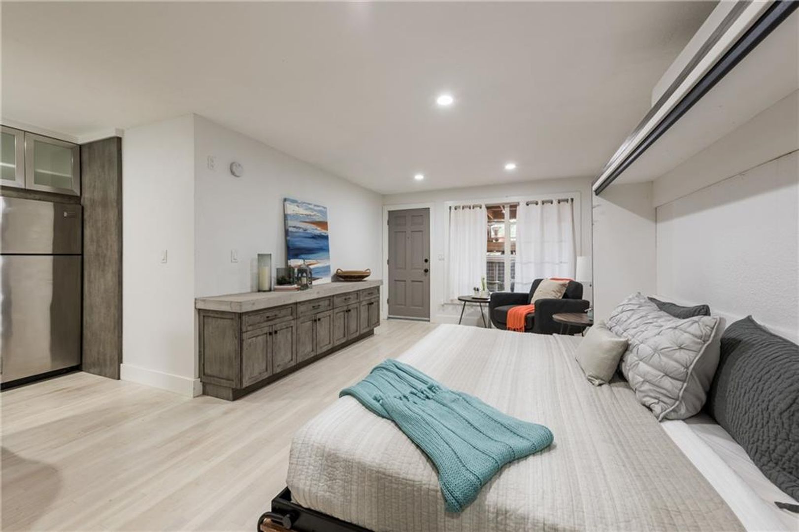Located at the amazing corner of 12th and Lamar, this charming condo offers unbeatable walkability to Downtown, Pease Park, Shoal Creek, and UT Austin. Inside, the studio features a built-in breakfast bar, refrigerator, dishwasher, and oven, along with spacious concrete detailing and abundant natural light that creates a warm and inviting atmosphere—perfect for entertaining or relaxing nights in. Enjoy a lovely outdoor patio space ideal for plants or simply unwinding under the Texas sky. This unit is available for a 1- to 12-month lease, a rare opportunity, and can be offered furnished or unfurnished to suit your needs.